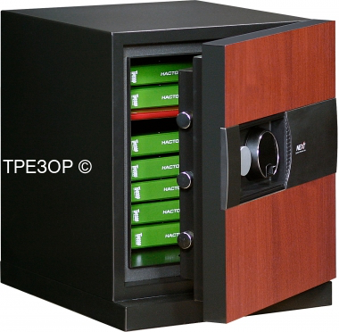 Премиум сейф NEXT 5500 (вишня) от Diplomat Safe. Сочетает в себе традиционную огнестойкость с защитой от взлома (RSC UL, S2). Благодаря декоративным панелям высочайшего качества, сдержанному и стильному дизайну (в духе сейфов KASO) украсит собой любое помещение. Интерьер выполнен в люксовой стилистике с дополнительным отсеком для хранения драгоценностей, увеличенные ригеля, специальный противодымный уплотнитель двери и электронный замок нового поколения.