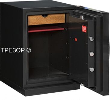 Премиум офисный сейф NEXT 6500 с дизайнерской чёрной передней панелью от компании Diplomat. Сочетает в себе традиционную огнестойкость с защитой от взлома (RSC UL, S2). Благодаря декоративным панелям высочайшего качества, сдержанному и стильному дизайну (в духе сейфов KASO) украсит собой любое помещение. Интерьер выполнен в люксовой стилистике с дополнительным отсеком для хранения драгоценностей, увеличенные ригеля, специальный противодымный уплотнитель двери и электронный замок нового поколения.