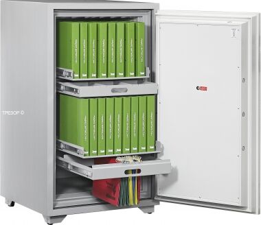 Теперь работа с надёжно защищёнными от огня документами станет намного более комфортной. Уже не надо нырять вглубь сейфа за далеко запавшей папкой и метаться от сейфа для папок к сейфу для подвесных файлов, перебегая затем к картотечному сейфу с трудовыми книжками и после кланяться сейфу для магнитных носителей. Серия Diplomat PDH - соберите идеальный сейф для работы!