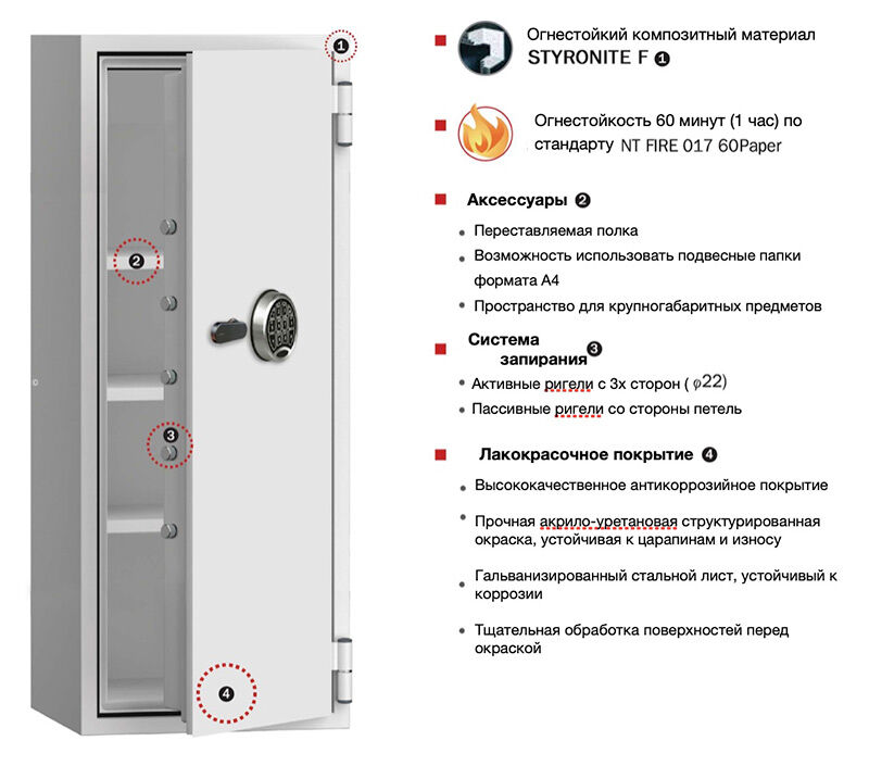 За счёт оптимизации внутреннего пространства и исключения не всем нужных внутренних аксессуаров, получились компактные сейфы, которые можно разместить в любой нише. Наружная ширина в 44 сантиметра является уникальным предложением на рынке. Все остальные сейфы заметно шире.